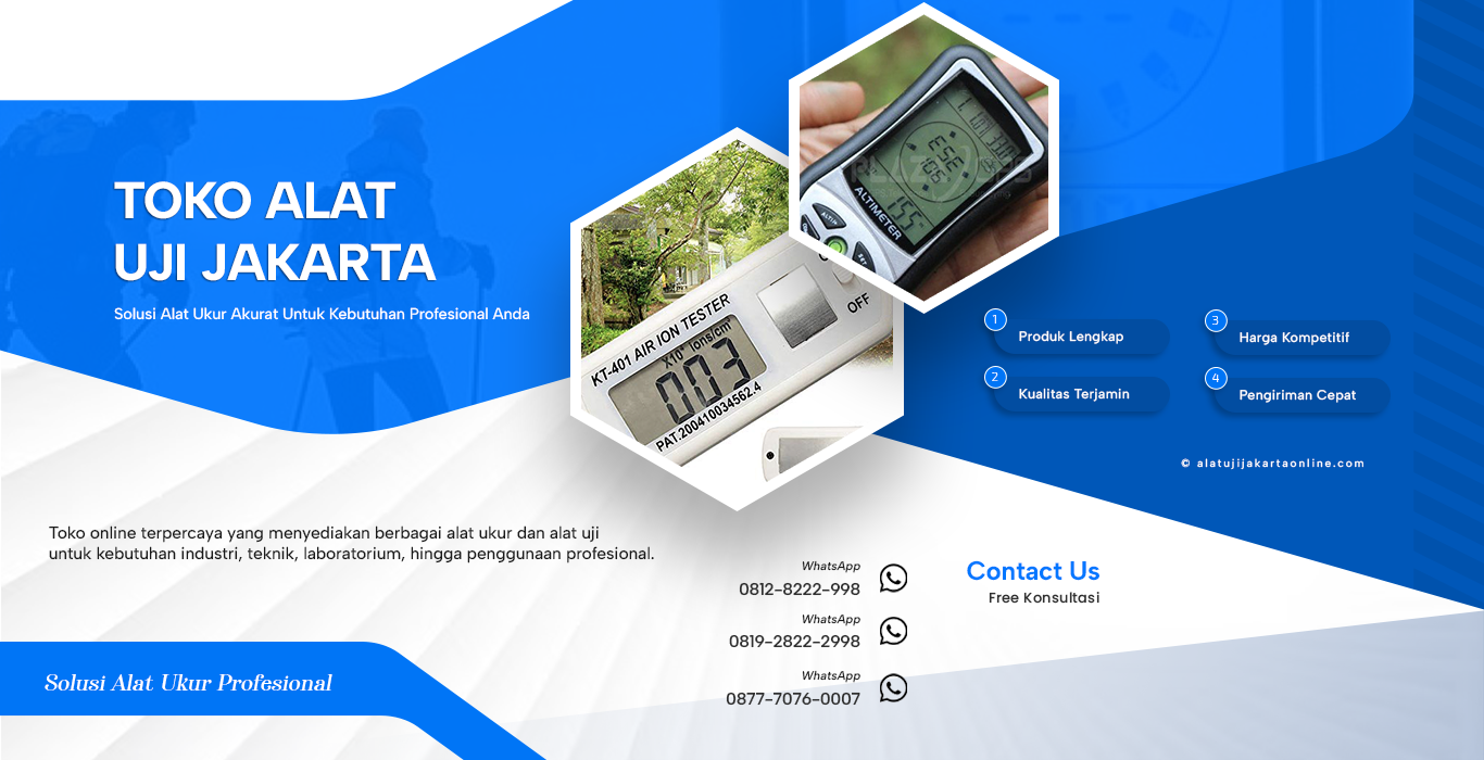 Toko Alat Uji Jakarta adalah toko online terpercaya yang menyediakan berbagai alat ukur dan alat uji untuk kebutuhan industri, teknik, laboratorium, hingga penggunaan profesional di seluruh Indonesia. Kami hadir untuk memberikan solusi pengukuran yang akurat dengan produk berkualitas tinggi serta layanan yang mudah diakses secara online.